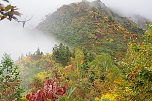 2日目…朝日小屋5:00〜5:55朝日岳6:10〜6:55朝日小屋7:10〜11:20北又登山口12:15=タクシー=小川温泉駐車場