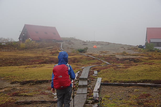 朝日岳登頂以上に朝日小屋に宿泊することが最大目的のお客さま。残念ながらもう1人のお客さまは怪我で欠席。