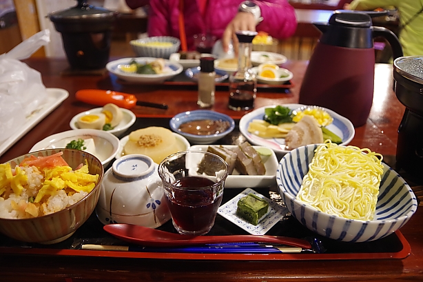▲朝日小屋の夕食。とても山小屋のメニューとは思えませんね。