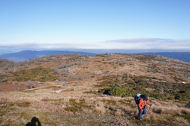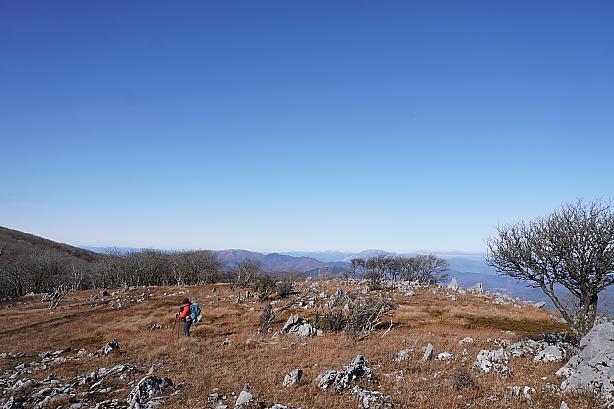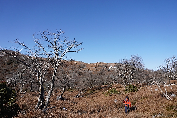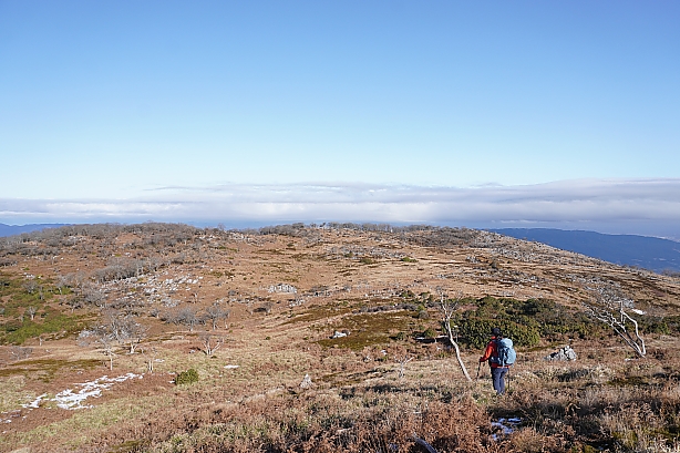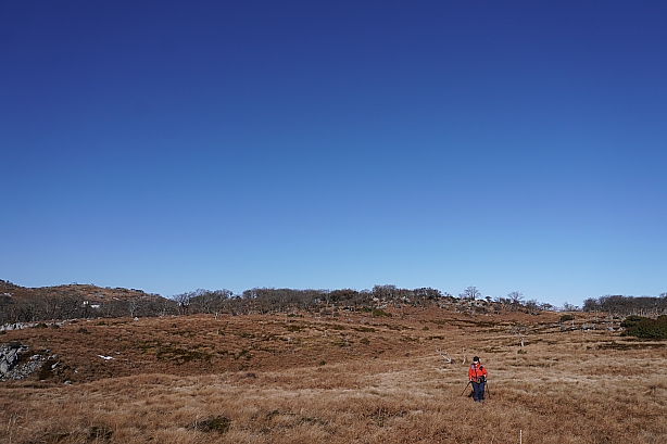 広い広い頂上台地、道を大きく外して頂上へ向かいます。