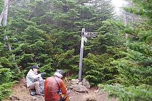 ▲縞枯山(2403m)到着。今回のお客さま、ご参加誠に有難うございます。