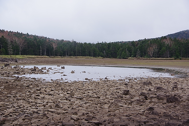 ▲縞枯山を下り、雨池峠を経て雨池へ