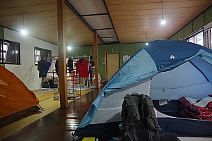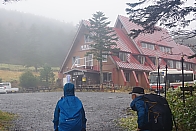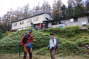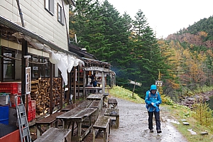 ▲今宵の宿、双子池ヒュッテ。まずは1日目、雨に降られず良かったですね。