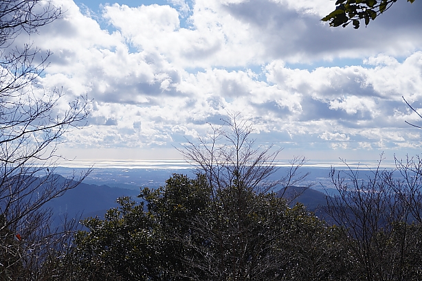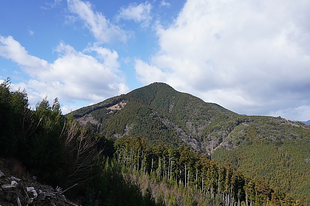 ▲樹林帯を抜け展望コースから望む、八高山です。
