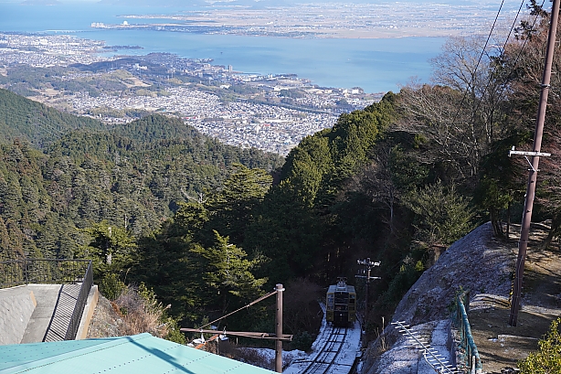 ▲▼比叡山ドライブウェイ駐車場で昼食後、ケーブル延暦寺駅に移動。駅の屋上が本日一番のビューポイント♪