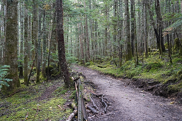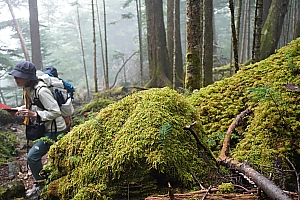 1日目はみどり池を過ぎた辺りから雨。そんな雨ですが、北八ヶ岳の森は雨が似合いますね。苔むす森は潤いを得て
