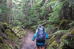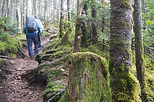 ▲苔むす森、登山度はふかふかで歩きやすい。こんな道は急ぎ足は勿体ないですね。