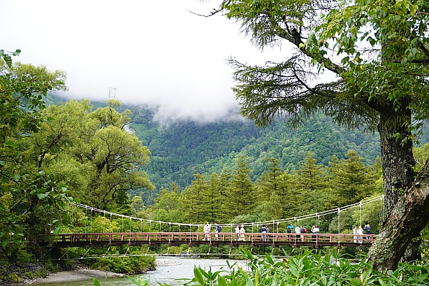 ▲日曜日、多くの登山者&観光客で賑わう明神、河童橋です。