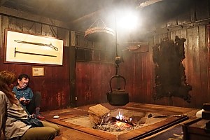 ▲上条嘉門次さんが建てた当時の雰囲気をそのまま残す、いろり小屋。いい雰囲気です。