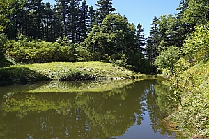 ▲妖精の池を越えた所で休憩。雲一つない快晴です。