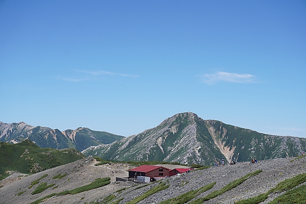 ▲今宵の宿、蝶ヶ岳ヒュッテと常念岳