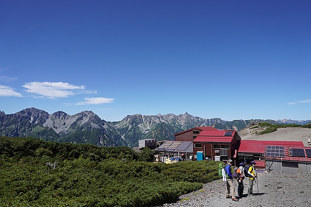 そして2日目以降も台風一過?天気の恵まれ最高のアルプス日和。穂高槍を眺める最高のロケーションに建つ、蝶ヶ