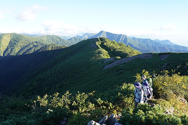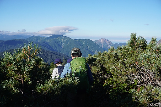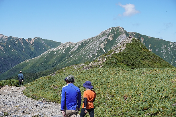 ▲ハイマツの中、気持ちいい尾根が大滝山へ続きます。