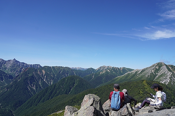 ▲蝶ヶ岳(2677m)到着です。最高の天気、良かったですね。