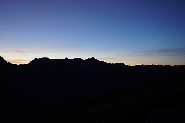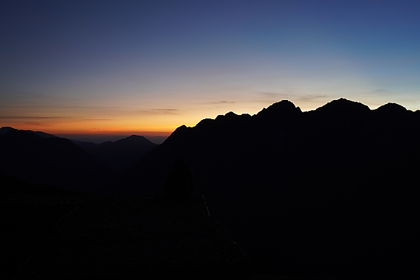 ▲▼夕食後、陽が沈み穂高連峰がシルエットに