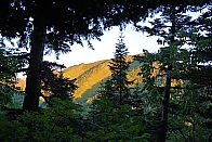 ▲前穂高岳に陽が当たってきました。そして1時間程で徳沢到着。