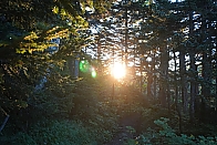 ▲タイミング悪く、樹林帯で日の出を迎えました。
