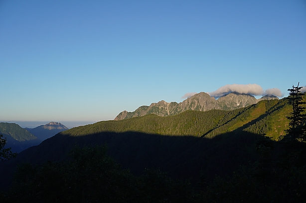 3日目…蝶ヶ岳ヒュッテ4:40〜大滝山北峰6:12〜大滝山荘〜6:25大滝山南峰6:35〜8:55大滝槍見台9:10〜11:10