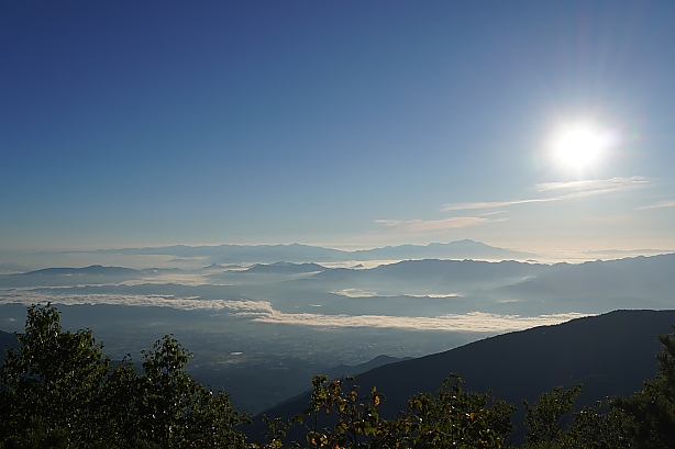 ▲安曇野方面に広がる雲海。一番奥が四阿山と浅間山