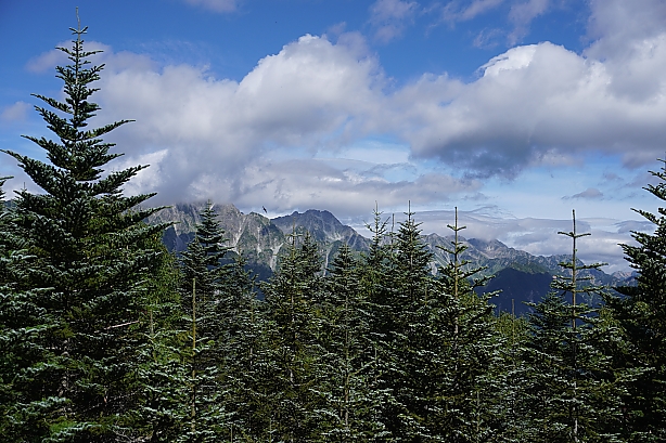 ▲大滝槍見台から…槍ヶ岳の穂先は雲の中ですね。