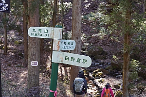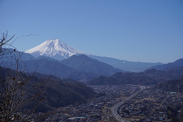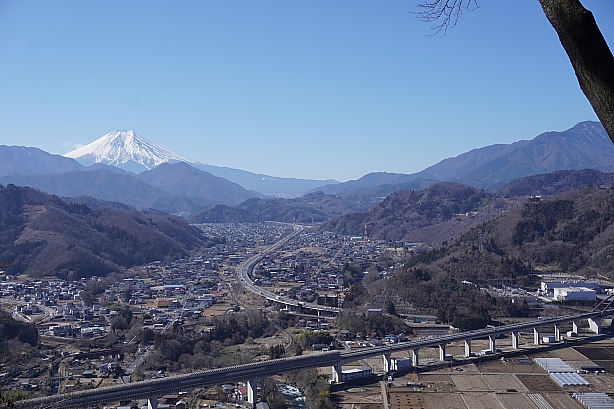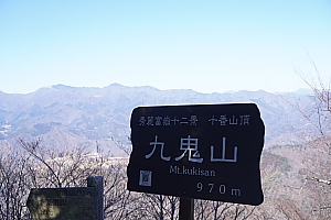 大月市選定の秀麗富嶽十二景、九鬼山。大月市に属する頂上からは木の間から少しですが、都留市側の道中の方が