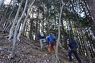 ▲落葉を踏んで、歩きやすい道を下ります。