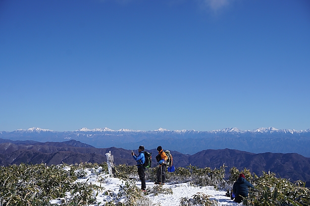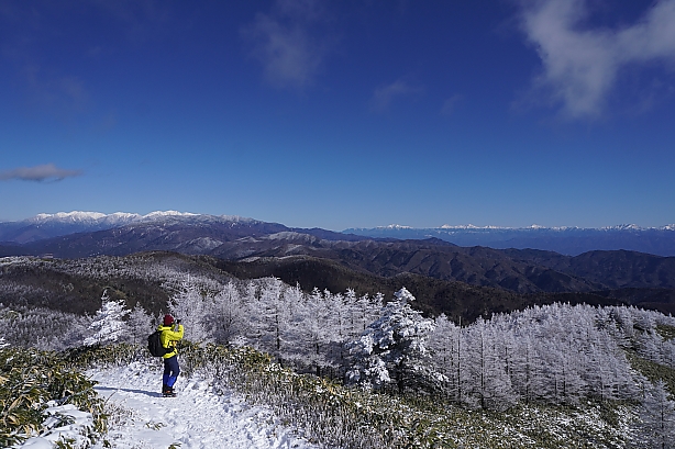 横川山の頂上直下の登りでは大絶景! 南アルプス北部、仙丈ヶ岳から南部、聖岳&光岳。そして深南部の峰々。