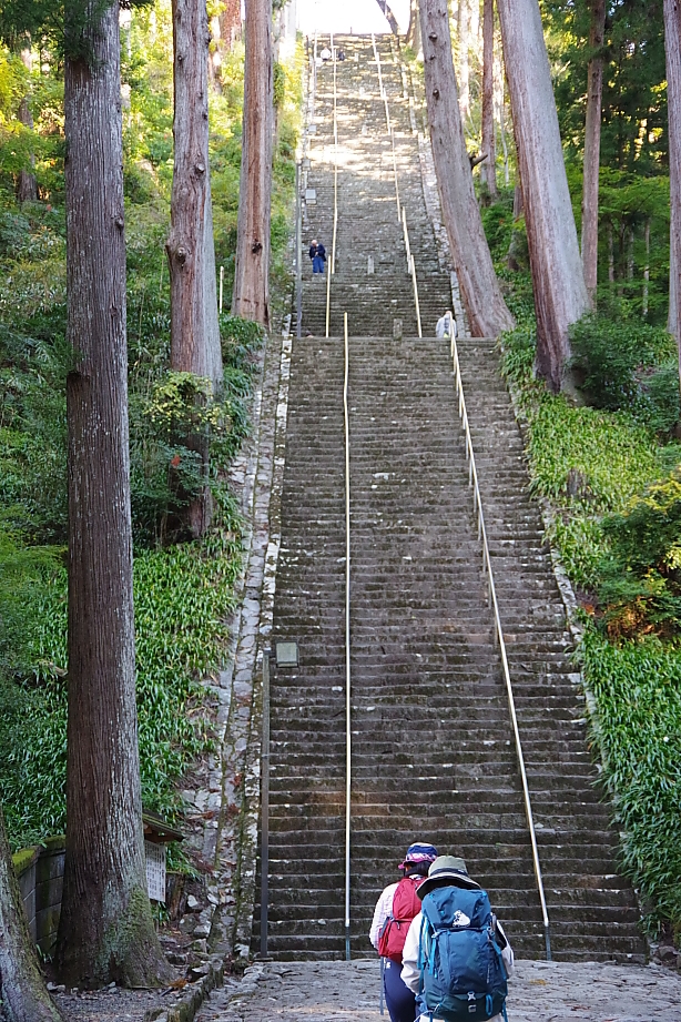 ▲久遠寺まで戻ってきました。見上げると絶望的な200段の石段から始まったんですね。