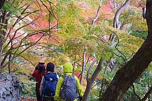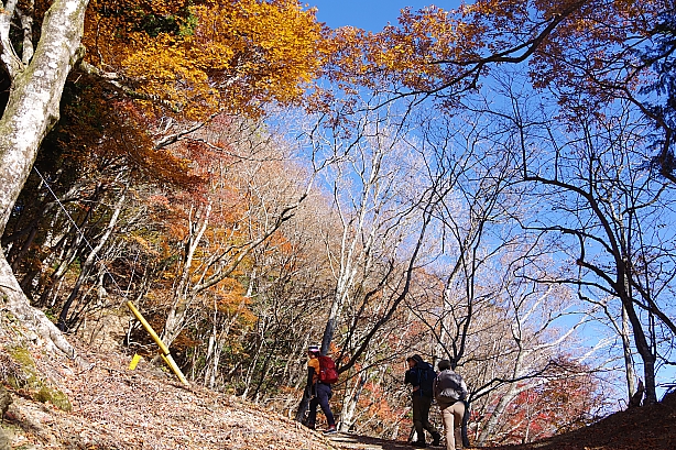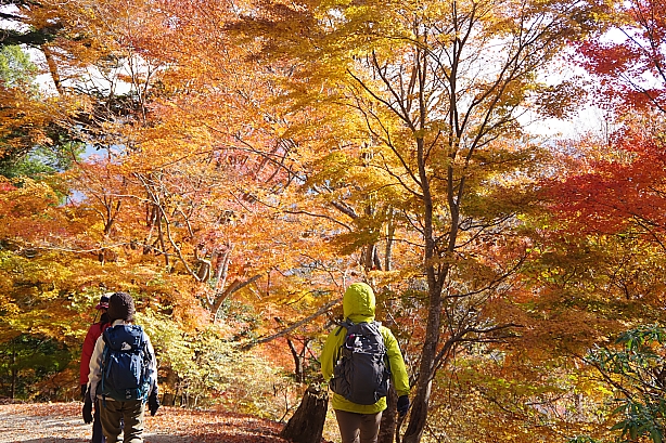 ▲降りてくると、もみじもまだ緑色が多いですね。