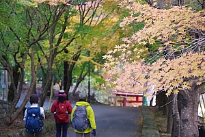 ロープウェイで頂上まで登ることは出来ますが、参道中腹の紅葉が見事。飽きてくるような平凡な道も快適です。