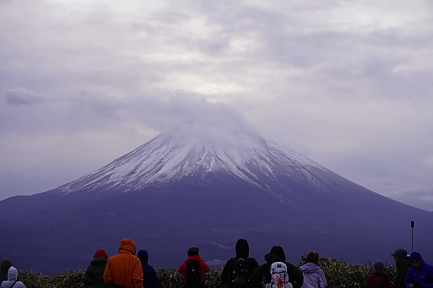 竜ヶ岳のダイヤモンド富士は残念。富士山はしっかり見えるのですが、雲が多く朝日は上がらず。