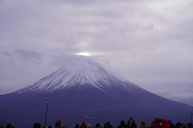 ▲多くの皆さんが待つ中、雲が多くダイヤモンド富士はちょっと残念の感じです。