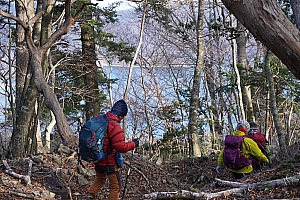 ▲端足峠を経て本栖湖いこいの森キャンプ場へ下ります。