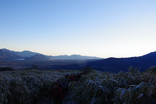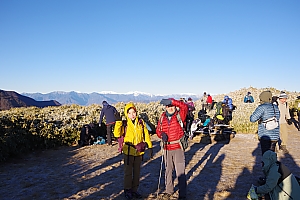 竜ヶ岳の広い頂上も日の出を待つ登山者で大賑わい。感動のひと時でした。