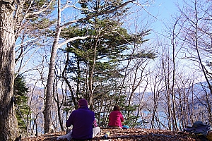 ▲中ノ倉山(1247m)此方の暖かポイントでランチタイムです。