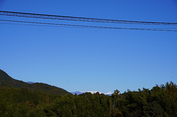 ▲貫ヶ岳中沢登山口駐車場付近より…南アルプス、北岳、間ノ岳