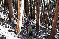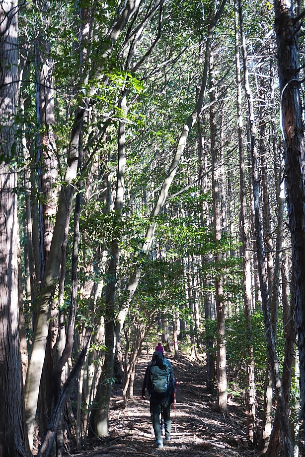 ▲登山口を出発、植林帯を地味に高度を上げていきます。