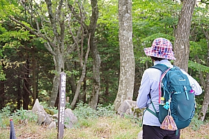 ▲縦走路の足元はふかふかで歩きやすい。2座目、西坂山(530m)です。