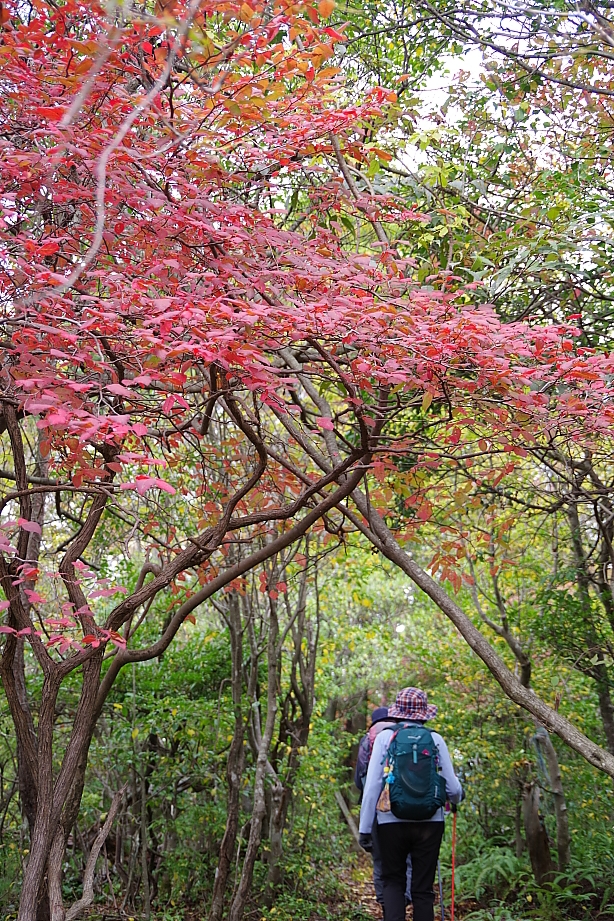 誰とも出会わない静かな山歩き。道標は少ないものの概ね歩きやすい。紅葉最盛期はもう少し先でしょうか?