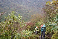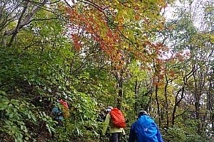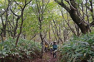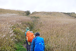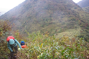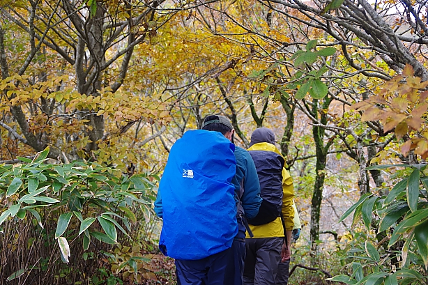 ▲孫三瓶へ向かう途中、雨が降ってきましたので雨具着用