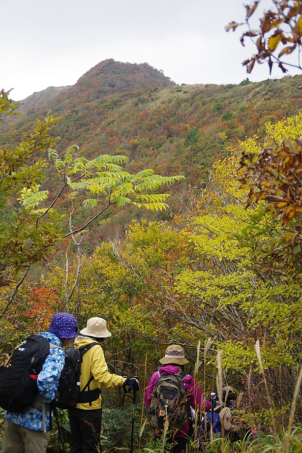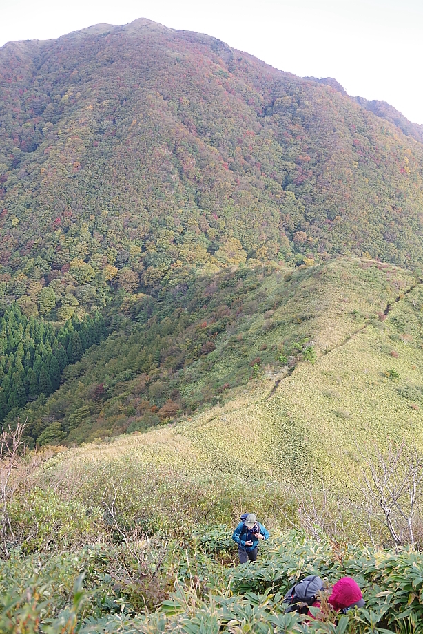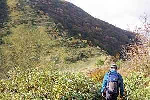 ▲最後に登る男三瓶を背に…子三瓶の登りです。