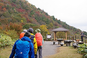 3日目…ホテルルートイン三次7:30=道後山登山口(深い霧、小雨、強風で登山断念)=「帝釈峡ハイキング」=