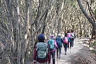 ▲備長炭の材料になるウバメガシの稜線を辿り、高倉山(200m)