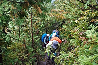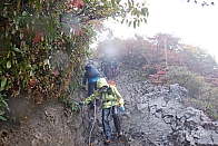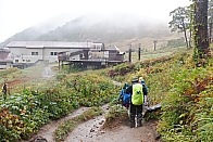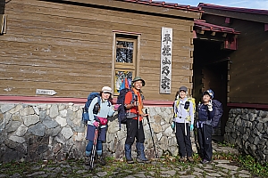 ▲後半は雨の中、谷川岳肩の小屋到着です。今回のお客さま、ご参加誠に有難うございます。