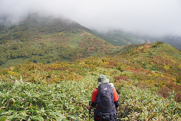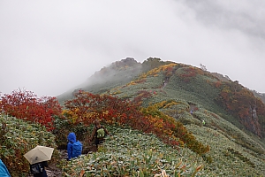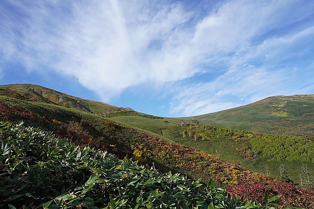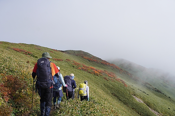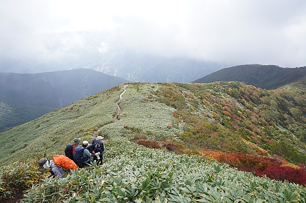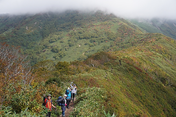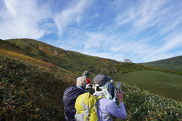 7合目より上部の紅葉は見頃を迎え皆さん大感激。広い平標山でのんびり。