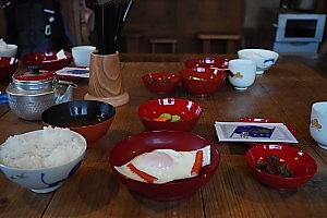 ▲平標山の家の朝食です。今日は降りるだけですのでゆったり。