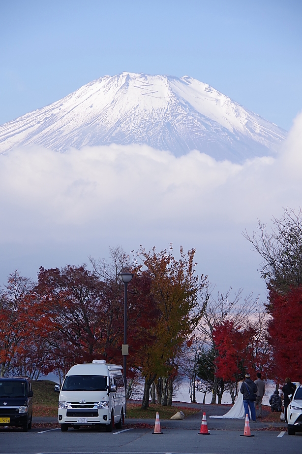 ▲山中湖畔、きらら駐車場にて。ウエディングの前撮りが行なわれてました。