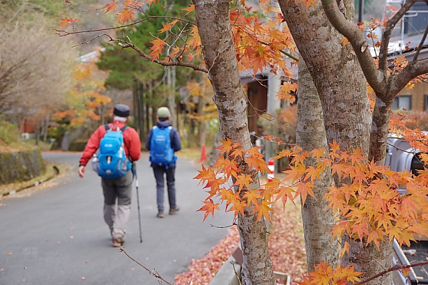▲タクシーで大平山登山口まで送って頂いてスタート。落葉をいっぱい踏んで…まだ木々の秋色は残ってます。
