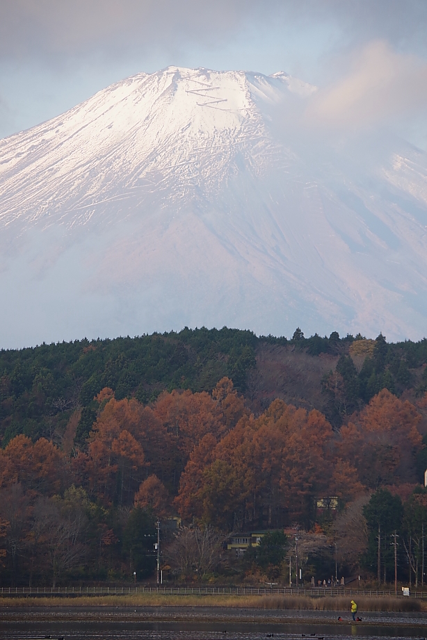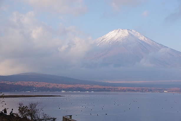 ▲宿泊地、ハートランドから1分の山中湖畔より。朝の富士山♪