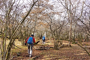 ▲▼三国山を一旦下り、三国峠を経て明神山への登りです。